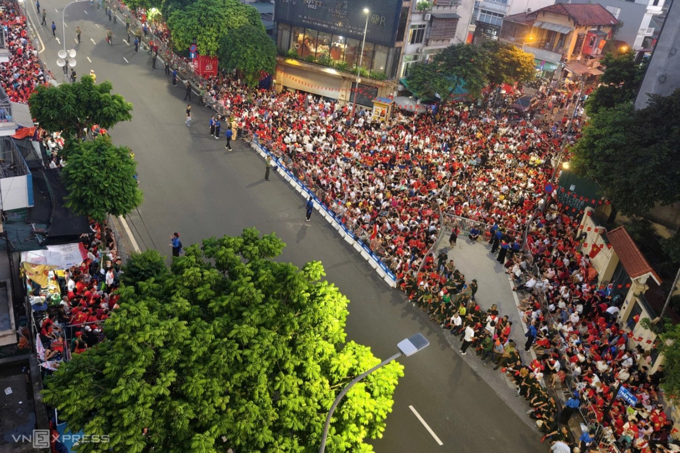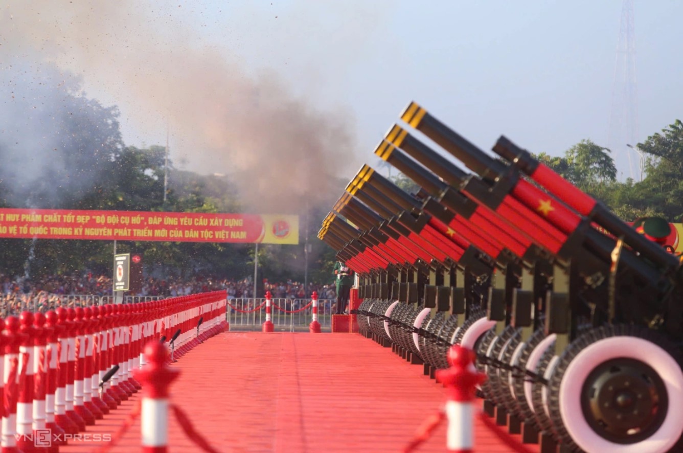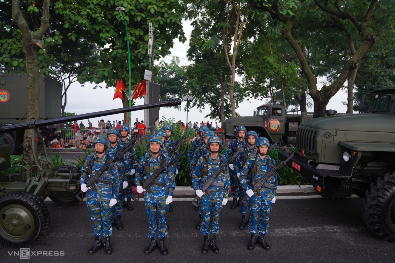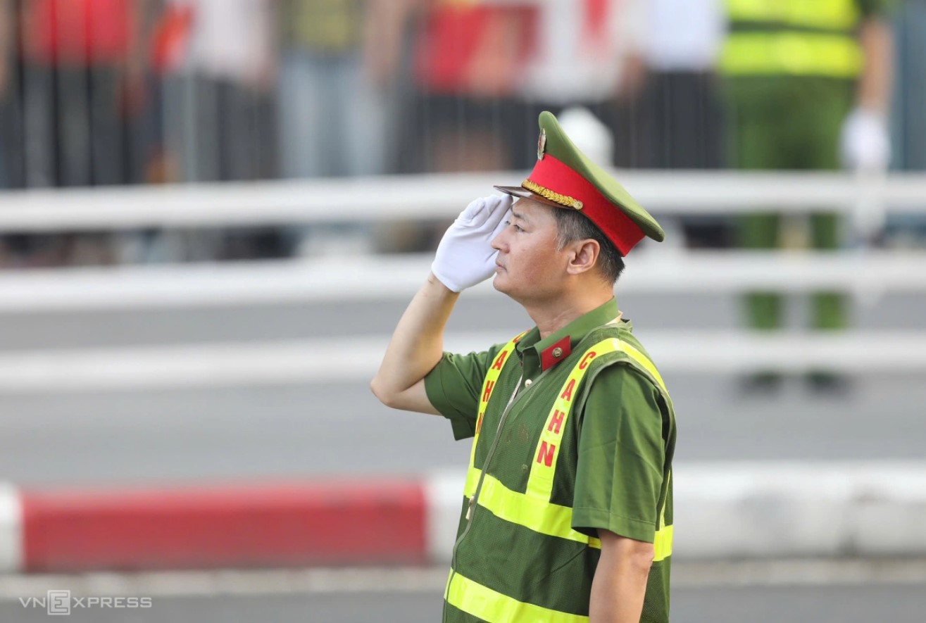 Trên các tuyến Trần Phú, Điện Biên Phủ, Kim Mã, Nguyễn Thái Học, từng hàng dài người đứng sát barie, nhiều gia đình cho trẻ nhỏ ngồi trên vai để nhìn rõ hơn. Hàng nghìn cựu binh được xếp chỗ ngồi ưu tiên, háo hức chờ đoàn quân tiến qua. Trong khán đài, các đoàn đại biểu trong và ngoài nước ngồi kín hơn 30.000 ghế.