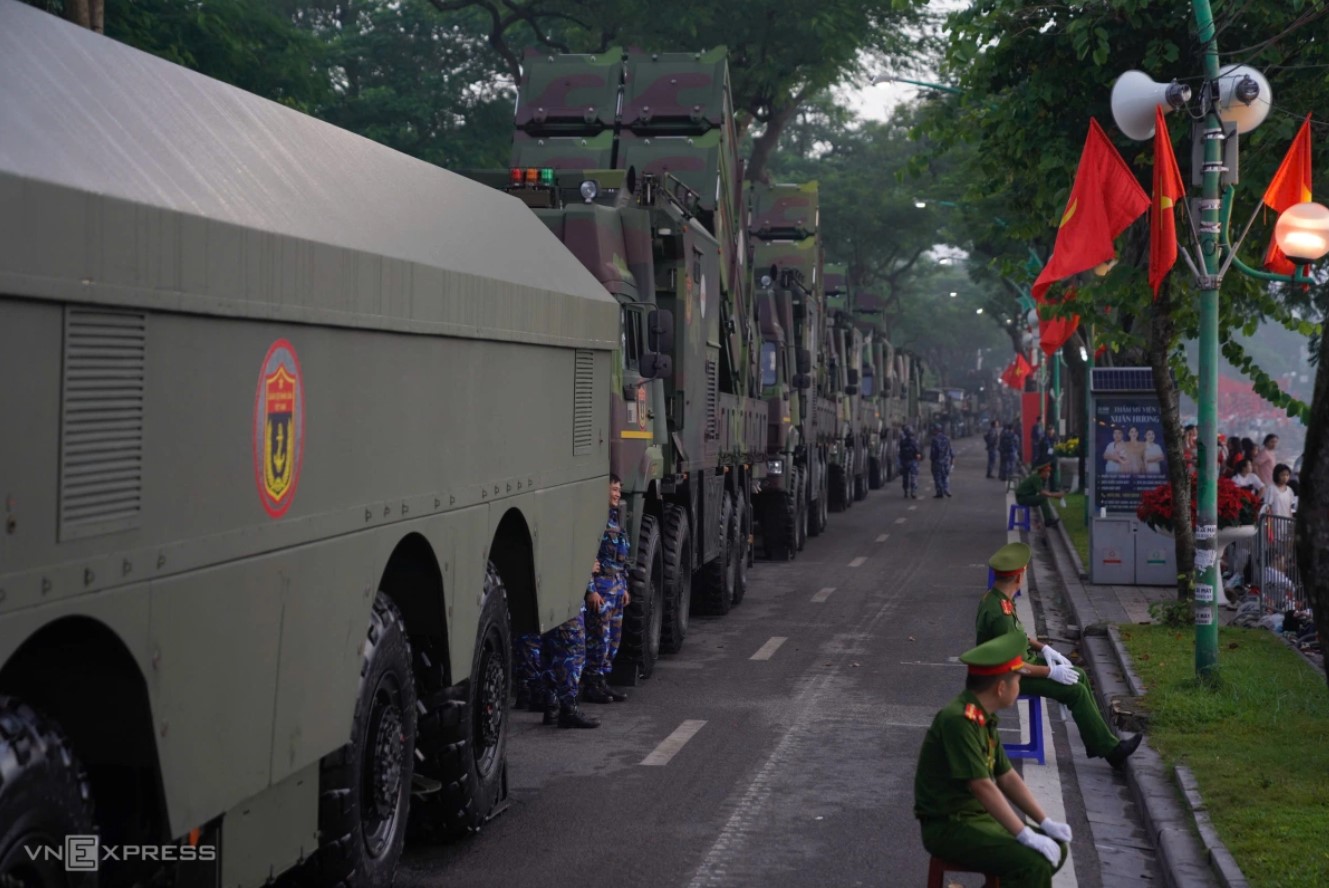6h15 AM - Xe pháo tập kết trên đường Thanh Niên sẵn sàng